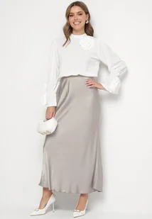 Szara Spódnica Satynowa z Wiskozy o Rozkloszowanym Kroju Hanorilae