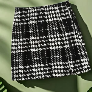 TEMU 1 Szt. Elegancka Damska Spódnica Z Poliestru W Kostce - 98% Poliestru 2% Elastanu, Krótki Różanie, Tkane, Wiosna/jesień Moda Półspódnica