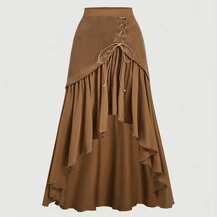 TEMU Asymetryczna Sukienka z Falbanką w Kolorze Kamel, Damski Styl Zachodni, Wakacyjne Ubranie dla Kobiet, Boho Odzież Zachodnia, Brązowa Spódnica z