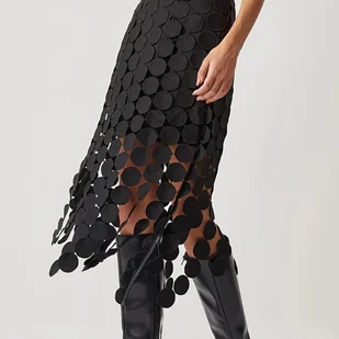 TEMU Daerling Damska Stylowa Czarna Plisowana Spódnica z Wycięciami - Możliwość Prania w Pralce, Półprzezroczysta, Uniwersalna na Każdą Porę Roku i