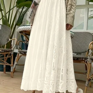 TEMU Damska spódnica maxi z kwiatowym nadrukiem i koronką - lekki poliester, stopniowany design z marszczonym brzegiem, idealny na wiosnę/leto, od