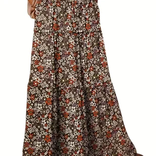 TEMU Damska spódnica midi w stylu bohemy z kwiatowym nadrukiem na , długa plisowana spódnica o kroju litery A z wysokim stanem, idealna na