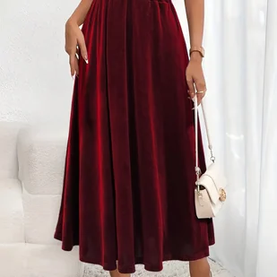 TEMU damska spódnica z weluru o średniej długości, idealna do codziennych dojazdów do pracy, wykonana z materiału o średniej rozciągliwości i z