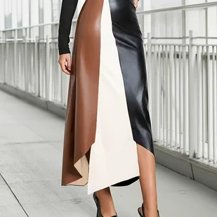 TEMU Spódnica Damska Wysokiej Talii - Elegancka Asymetryczna Midi/Długość z Kolorowymi Blokami (Odpowiednia dla -) | Spódnica Jednokolorowa do Prania