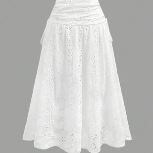 TEMU Elegancka biała spódnica maxi z koronkowym detalem - wysoka, płynna konstrukcja, idealna na wiosnę/leto/jesień, moda damska, eleganckie