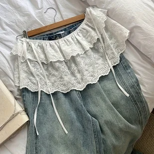 TEMU Elegancka biała spódnica z koronką i marszczonymi detalem - geometryczny wzór, uniwersalna na każdą porę roku dla kobiet, idealna do