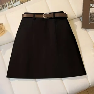 TEMU Elegancka Czarna Spódnica A-Line z Paskiem dla Kobiet - Casual i Dojazdowa