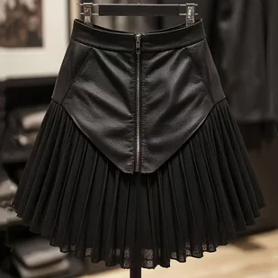 TEMU Elegancka damska czarna plisowana spódnica z wysokim stanem - seksowna spódnica krótka w kształcie litery A z kieszeniami, luźny krój, na każdą