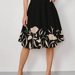 TEMU Elegancka damska spódnica A-line o średniej długości z kwiatowym nadrukiem na jesień