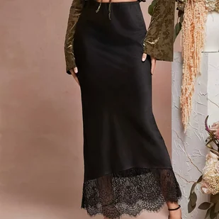 TEMU Elegancka i stylowa, długa, uniwersalna, prosta spódnica z luźnym, koronkowym wzorem patchworkowym.