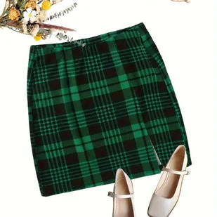 TEMU Elegancka plisowana mini spódnica dla kobiet, zielono-czarna, poliester 95% 5%, dzianinowa tkanina, lekka 210g/m², sezon wiosna/jesień
