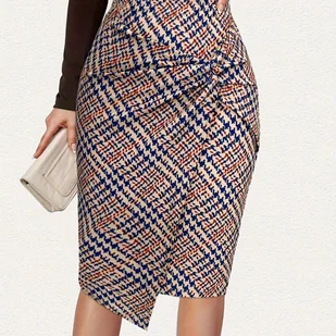 TEMU Elegancka Romantyczna Spódnica Midi w Stylu Wakacyjnym z Detalem Skręconego Przodu i Nadrukiem z Krepiny dla Kobiet