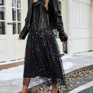 TEMU Elegancka Spódnica Midi w Kropki dla Kobiet z Metalowym Łańcuszkiem na Dołku - Wielokolorowa (Różowa/Niebieska/Żółta/Czarna/Biała) -