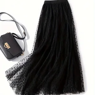 TEMU Elegancka Spódnica Midi w Kropki z Siatki - 100% Poliester, Lekka i Oddychająca, Pranie Ręczne lub Czyszczenie Chemiczne, Idealna na Każdą Porę