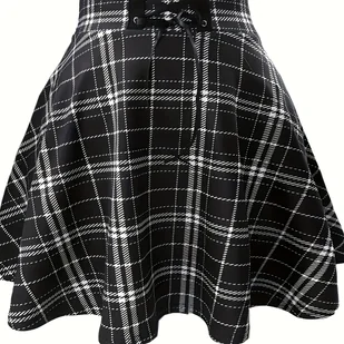 TEMU Elegancka Spódnica w Kratę dla Kobiet - A-Line, Półokrągła, Krótka do Średniej Długości (Niezalecana Długość do Kolan) z Zapięciem w Kokardy -