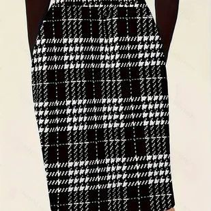 TEMU Elegancka Spódnica w Pepitkę dla Kobiet - Krótka do Midi (Regulowane Dopasowanie) - Czarno-Biała Kratka do Biura i na Półformalne Okazje -