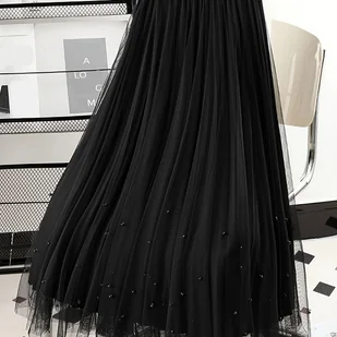 TEMU Elegancka spódnica midi z tiulu z cekinami - Wysoki stan, wyszczuplająca dzianina poliestrowa, jednolity wzór, długa, rozkloszowana spódnica dla