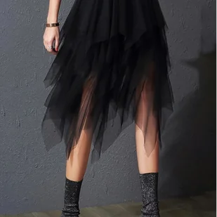 TEMU Elegancka spódnica z tulowym pasem | Wielosezonowa, wszechstronna spódnica z siatką | Jednokolorowa, luźna, z warstwowym wzorem | Idealna na