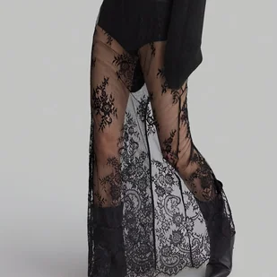 TEMU Elegancka Spódnica z Wysokim Stanem i Czarnym Koronkowym Motywem Kwiatowym dla Kobiet - Przezroczysty Wzór, Uniwersalna Moda na Wiosnę/,