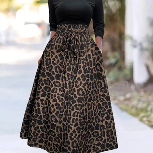 TEMU Modna Spódnica A-Line z Wzorzystym Leopardem, Elegancka i Wszechstronna, z Wiązaniem w Talii i Kokardą, Idealna na Codzienność i Dojazdy