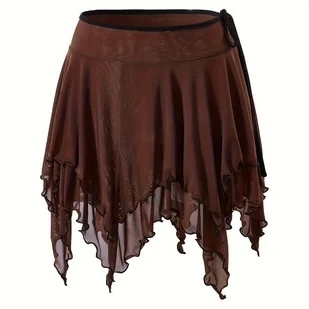 TEMU Spódnica asymetryczna z kontrastową lamówką, elegancka luźna spódnica na wiosnę i , odzież damska