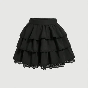 TEMU Spódnica Damska Czarna w Kwiaty - Nieelastyczna, Warstwowa, Pranie Maszynowe, Elegancka do Biura i na Co Dzień - Alternatywa dla Spodni,