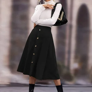 TEMU Spódnica Damska Elegancka z Guzikami - A-Line, Od Formalnych do Casualowych Stylizacji, Strukturalna Nieelastyczna Spódniczka Biurowa i