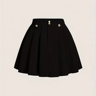 TEMU spódnica plisowana w jednolitym kolorze, ozdobiona guzikami, podkreślająca sylwetkę.