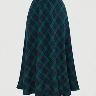 TEMU Spódnica Maxi w Kratę z Wysokim Stanem dla Kobiet – Ciemny Turkus i Granatowy, Rozkloszowany Dołek, Tkanina do Prania Maszynowego na Wiosnę