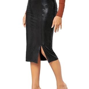 TEMU Spódnica Midi z wytłoczonym krokodylem, rozcięta spódnica z wysokim stanem na co dzień, odzież damska