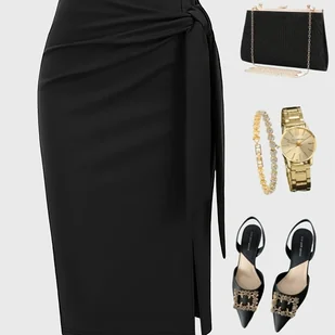 TEMU Spódnica Ołówkowa z Wiązaniem w Talii dla Kobiet - Czysta Czarna, Możliwość Prania w Pralce, Wszechstronna na Codzień i do Pracy, Idealna na