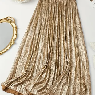 TEMU Spódnica w Jednolitym Kolorze z Wysokim Stanem, Elegancka Plisowana Spódnica Midi w Kształcie Litery A na Wiosnę i , Odzież Damska, Styl