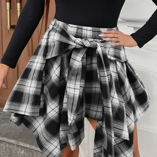 TEMU Spódnica w kratę w stylu Y2K, uliczna, z oddzielnym obszyciem i wiązaniem, z krótką spódniczką typu cover-up dla kobiet