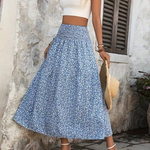 TEMU Wakacyjna Elegancka Spódnica Midi z Kwiatowym Nadrukiem dla Kobiet