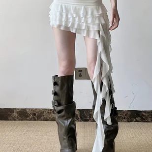 TEMU Wakacyjny Styl Warstwowa Spódnica Asymetryczna z Wbudowanymi Majtkami, Słodka i Elegancka Zapięta Falbanka z Frędzlami Spódnica A-Line
