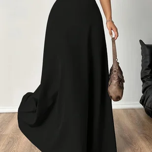 TEMU Wiosenno-Jesienna Spódnica A-Line dla Kobiet z Elastycznym Pasem, Jednokolorowa, Prosta i Modna