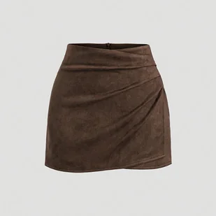 TEMU Włosko-Inspirowana Mini Spódniczka z Paskiem - Musztardowo- () Krótki Fason na Zamek, Odporna Na Zagniecenia i Pranie w Maszynie Elegancka