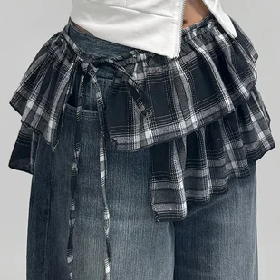 TEMU Y2K Damska Spódnica Wysokotalia - Czarno-Biała Kratka Plisowana z Zapięciem na Guziki i Wiązanie, Uniwersalna do Codziennych i Formalnych