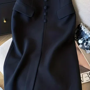 TEMU ZJ0826029 Elegancka Spódnica Damska, Jesienna Spódnica Wysokiej Talii z Rozcięciem, Podkreślająca Biodra, Prosta w Kształcie Litery A