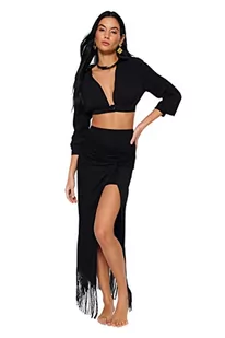 Trendyol Damska asymetryczna spódnica dzianinowa o regularnym kroju, czarna, 36, Czarny, 34