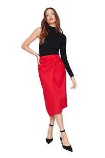 Trendyol Damska spódnica midi asymetryczna ołówkowa tkana spódnica, Czerwony, 62