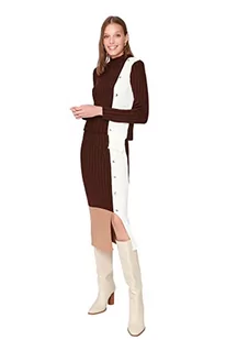 Trendyol Damski gładki cienki sweter z dzianiny spódnica dwuczęściowy zestaw, Brązowy, L