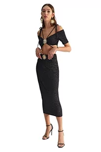 Trendyol FeMan Spódnica ołówkowa dzianinowa spódnica, czarna, 38, Czarny, 36