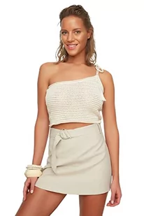 Trendyol Women's Len pasek strukturalny szczegółowy spódnica, beżowy, 40