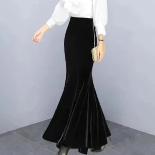 Welurowa ołówkowa spódnica maxi - Czarny M