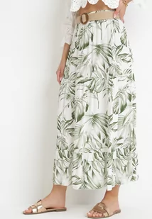 Biało-Zielona Wiskozowa Spódnica Maxi z Gumką w Pasie i Paskiem z Plecionki Dayo