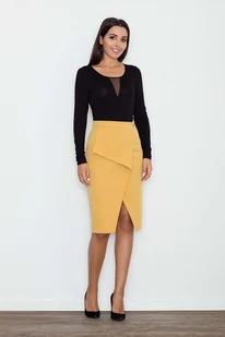 Żółta Spódnica Ołówkowa Midi z Kopertowym Założeniem