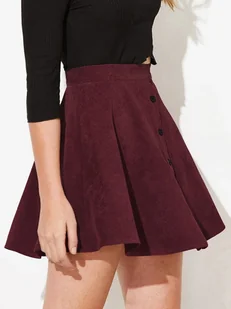 Zwiewna sztruksowa spódnica mini - Bordowy