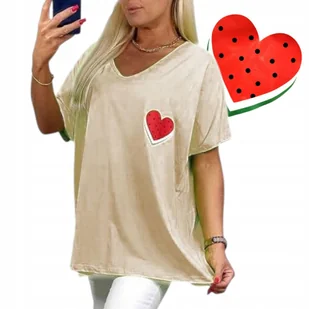 BAWEŁNIANA TUNIKA ARBUZ beżowa wygodna bluzka z nadrukiem Stylowa tunika bawełniana z cudną aplikacją ARBUZ SERCE Wymiary: Biust 80 cmx2 Biodra 75-80mx2 Dług...