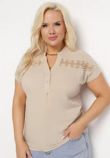 Beżowa Bawełniana Bluzka z Guzikami i Ozdobną Siateczką Doriale